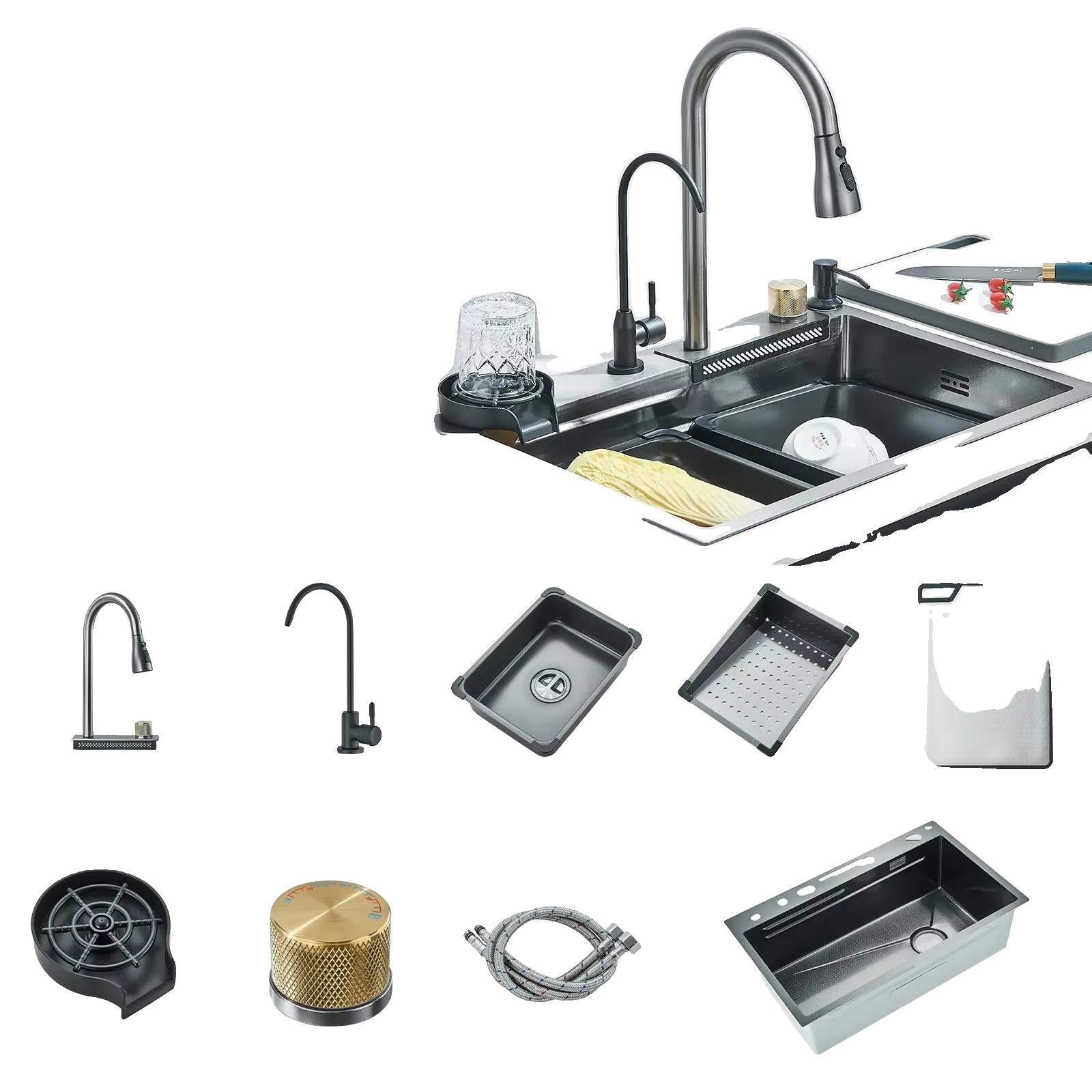 • Večfunkcionalna pipa: Uživajte v udobju vsestranske pipe za različne kuhinjske potrebe, kar olajša kuhanje in čiščenje.