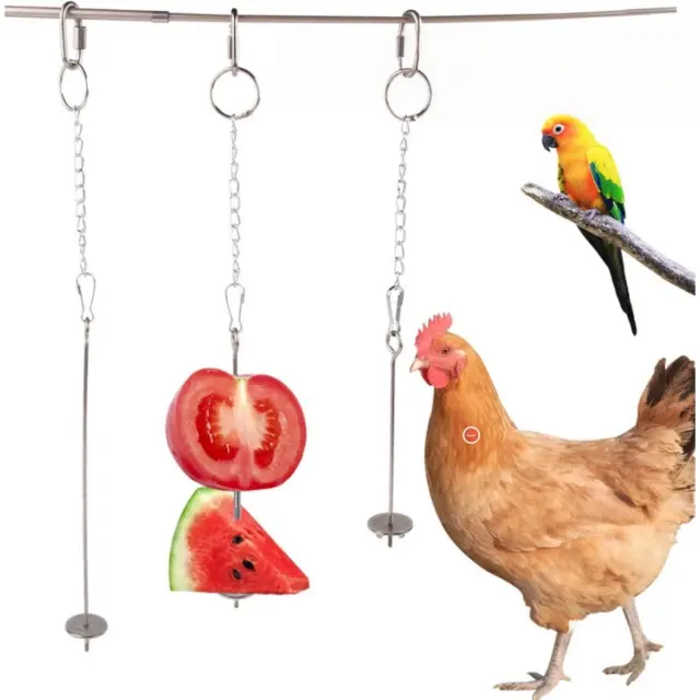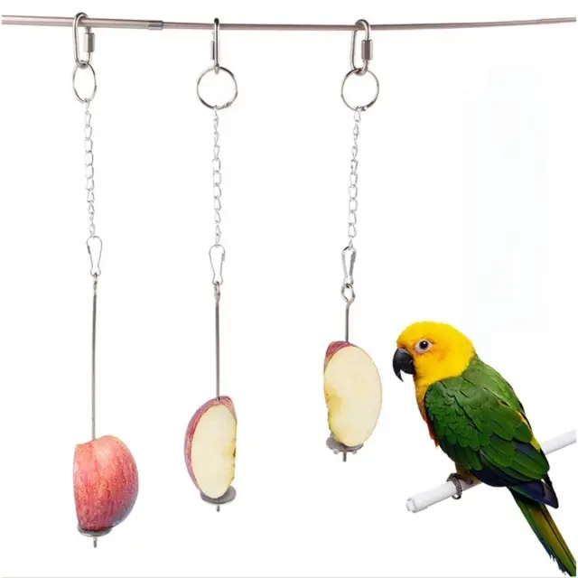 Privlačna igrača za iskanje hrane: Prosimo, upoštevajte: to niso originalni deli. Več kot le podajalnik, ta vilica za sadje služi tudi kot privlačna igrača za iskanje hrane za vaše ptice. Viseča oblika jih spodbuja, da delajo za hrano, kar spodbuja njihove naravne nagone in preprečuje dolgčas. S tem, ko morajo kljuvati in manipulirati s hrano na nabodalu, ptice razgibavajo kljune in kremplje, kar spodbuja telesno in duševno dobro počutje. Ta interaktivna izkušnja hranjenja pomaga zmanjšati stres in vedenje puljenja perja pri pticah v ujetništvu, kar vodi v srečnejše in bolj zdravo življenje. Veriga iz nerjavečega jekla in varna sponka omogočata enostavno obešanje v kateri koli kletki ali ptičnici, kar zagotavlja neskončno zabavo in obogatitev za vaše pernate spremljevalce.