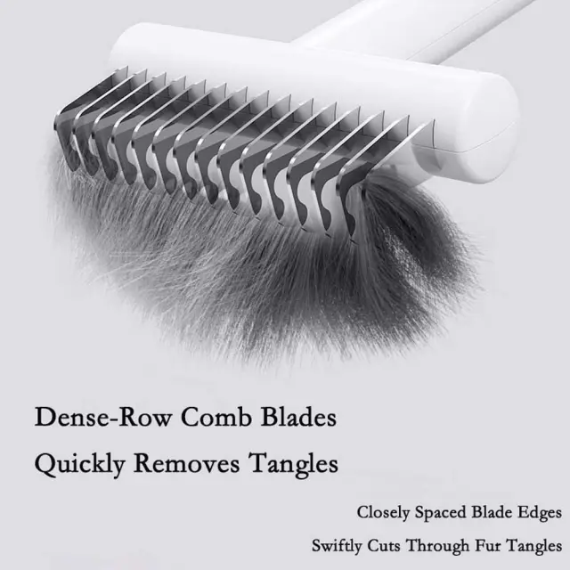 Varna in nežna zasnova: Prosimo, upoštevajte: to niso originalni deli. Glavnik za odstranjevanje vozlov ima varno in nežno zasnovo z zaobljenimi zunanjimi zobmi, ki preprečujejo praskanje ali draženje kože vašega ljubljenčka. Notranja rezila so dovolj ostra, da prerežejo vozle, vendar so vdolbena, da se izognejo nenamernim urezninam. To zagotavlja varno izkušnjo krtačenja, tudi za hišne ljubljenčke z občutljivo kožo. Glavnik je primeren za vse pasme psov in mačk, zaradi česar je vsestransko orodje za vsakega lastnika hišnih ljubljenčkov. Ergonomski ročaj zagotavlja udoben oprijem, ki vam omogoča, da svojega ljubljenčka negujete dlje časa brez utrujenosti rok. Ta glavnik je nepogrešljiv za lastnike hišnih ljubljenčkov, ki dajejo prednost varnosti in udobju svojega ljubljenčka med krtačenjem.