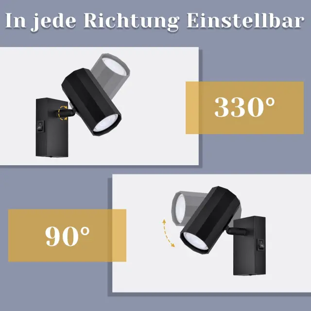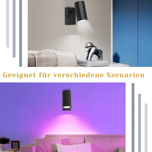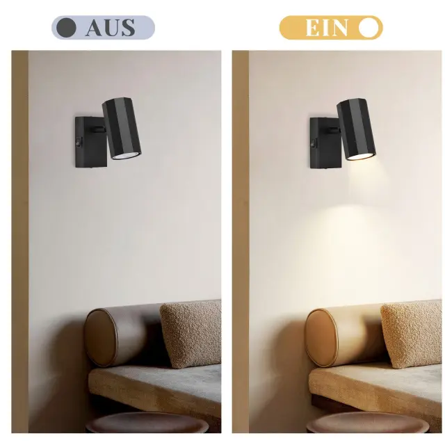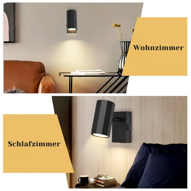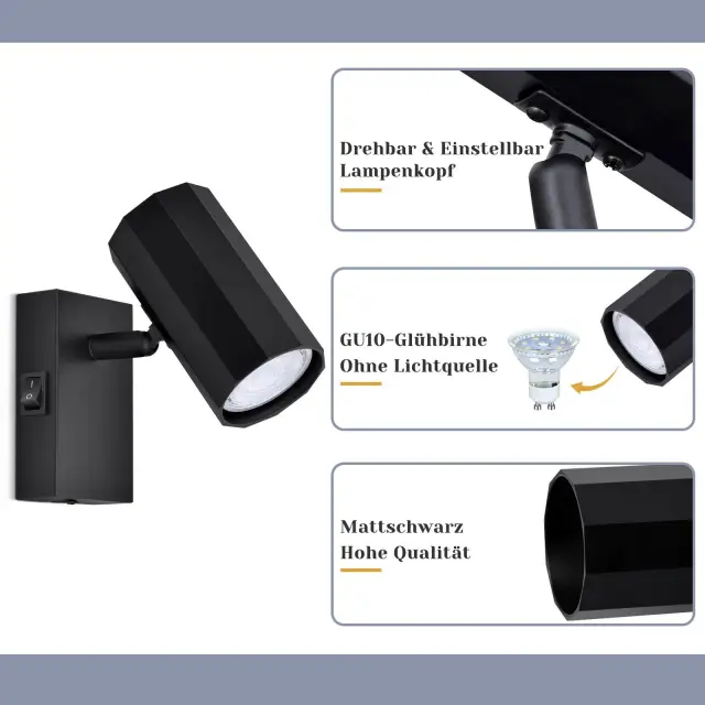 NETTLIFE 1-plamen črna stenska svetilka - Stenska svetilka s kovinskim stikalom GU10 Svetilka za hodnik MAX. 40W