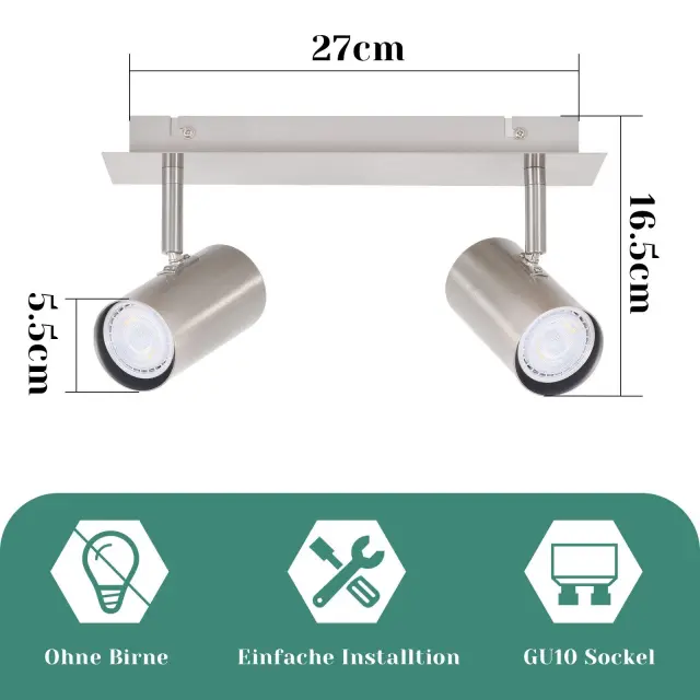 NETTLIFE 2 GU10 nikljevi stropni reflektorji za notranjo uporabo, hodnik, moderni stenski reflektor za kuhinjo, spalnico, dnevno sobo, brez žarnice