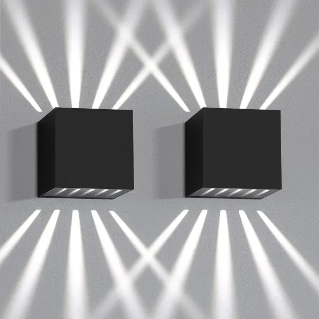NETTLIFE 2 kosa LED stenska svetilka Notranja & Zunanja - Črna Zunanja svetilka IP65 Vodotesna Zunanja 3000K Hladno bela Gor Dol 10W