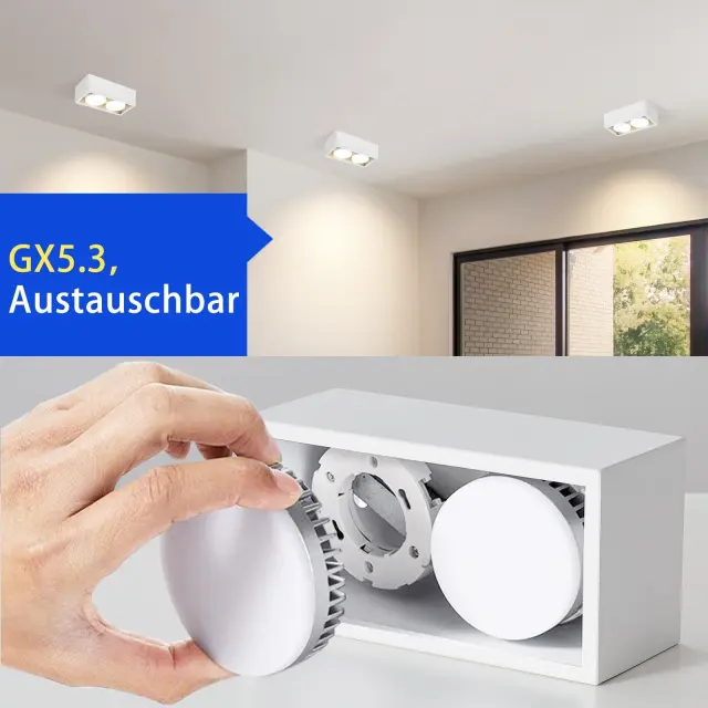 NETTLIFE 2 LED stropna reflektorja, toplo bela z nastavljivo svetlobo GX53, moderna kvadratna za kuhinjo, dnevno sobo, spalnico, hodnik