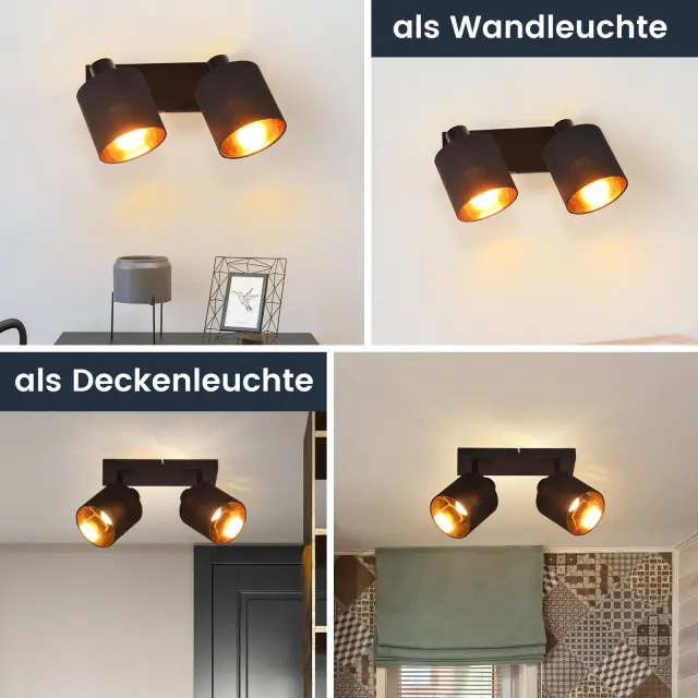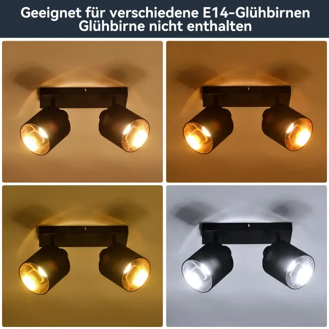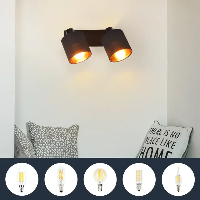 NETTLIFE 2 starinska črna stropna reflektorja E14 s tkaninskim zaslonom za dnevno sobo, spalnico, kuhinjo, brez žarnice