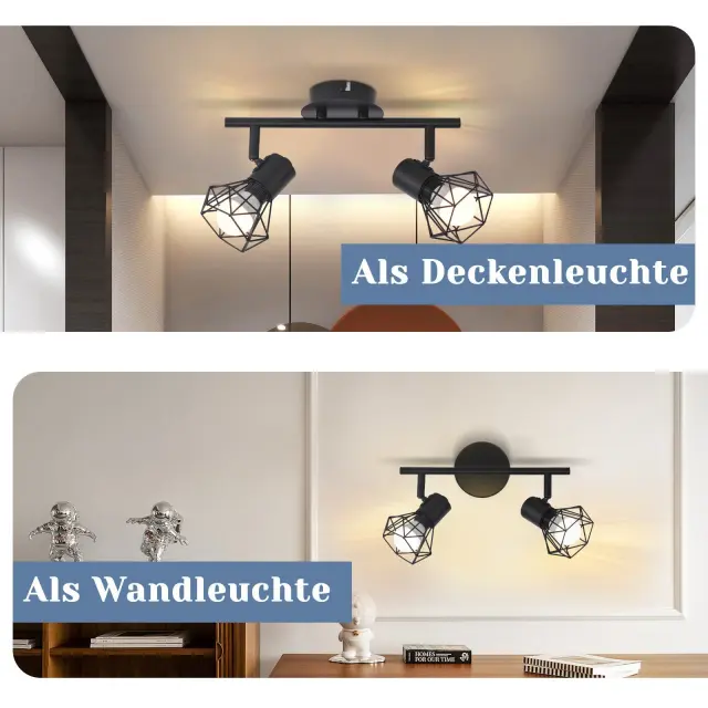 NETTLIFE 2 vintage črna stropna reflektorja E14 s plamenom, retro industrijska za hodnik, dnevno sobo, spalnico, kuhinjo, jedilnico