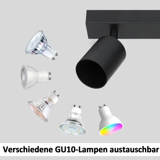 NETTLIFE 2 žarnici, max. 25 W GU10 LED stropna svetilka, črna, moderna svetilka za hodnik, vrtljiva za 350°, industrijska stenska svetilka