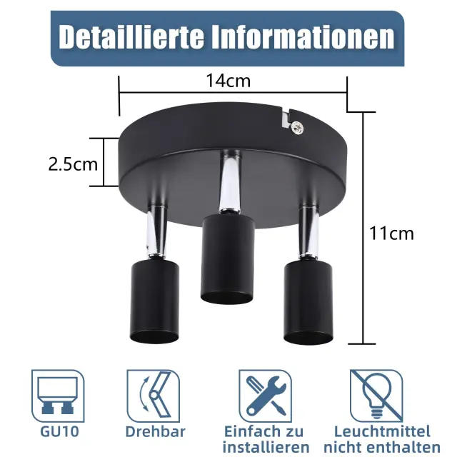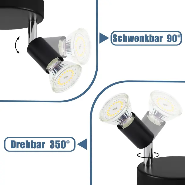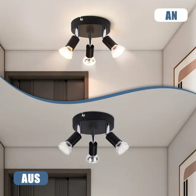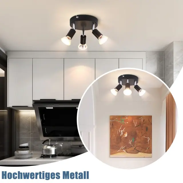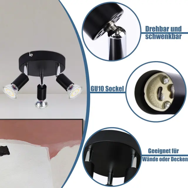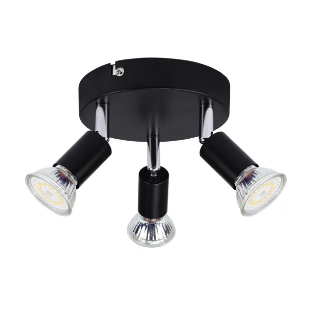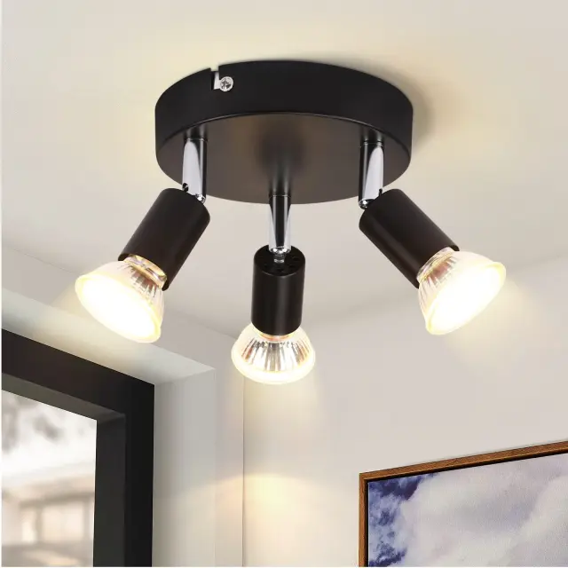 NETTLIFE 3 GU10 stropni reflektorji črne kovine, nastavljivi industrijski slog, za notranjost hodnika in dnevne sobe