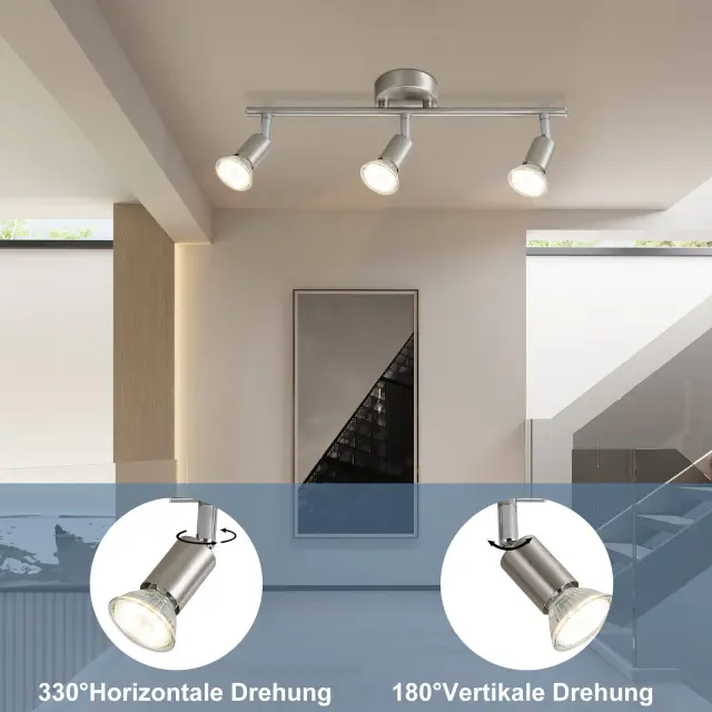 NETTLIFE 3 moderne stropne svetilke za hodnik GU10 vrtljiva svetilka iz nerjavečega jekla za dnevno sobo, brez žarnice