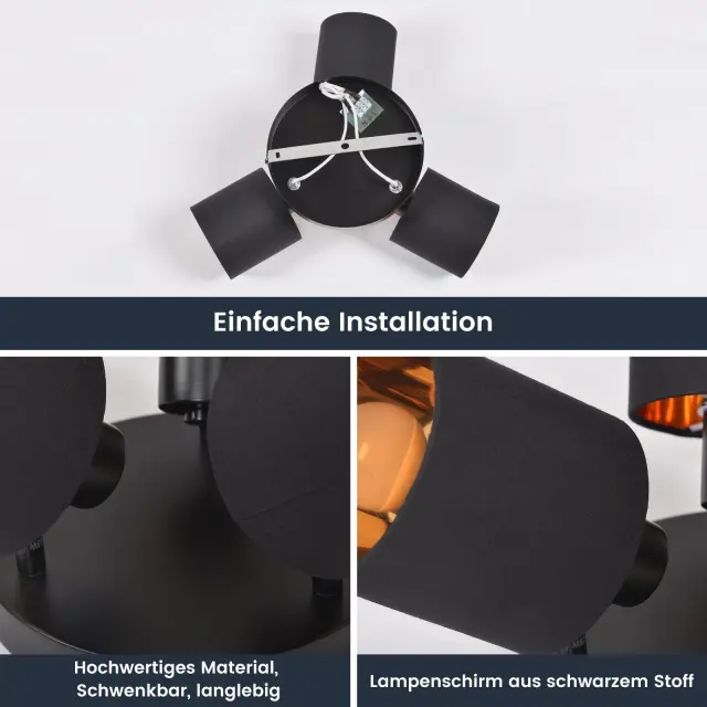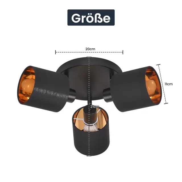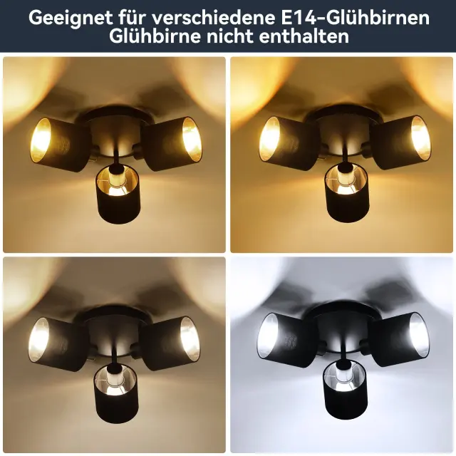 NETTLIFE 3 starinske črne stropne svetilke E14 MAX.25W s tkaninskim zaslonom za dnevno sobo, spalnico, kuhinjo, hodnik, brez žarnice