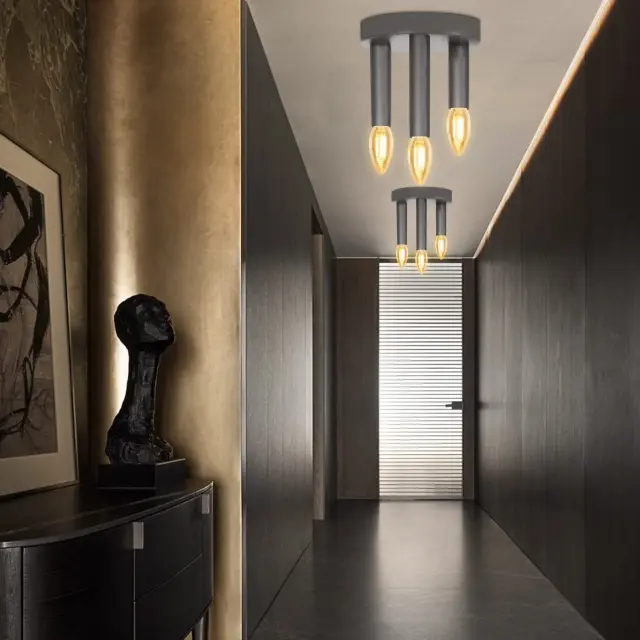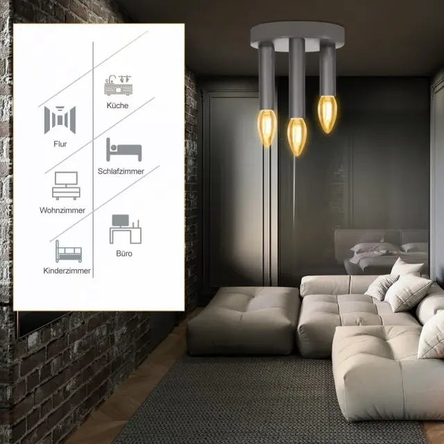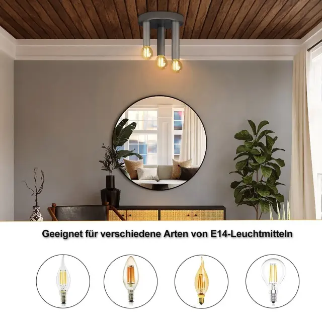 NETTLIFE 3-točkovna stropna svetilka E14 Vintage Retro industrijska siva svetilka za spalnico s kovinskim lestencem za dnevno sobo, hodnik