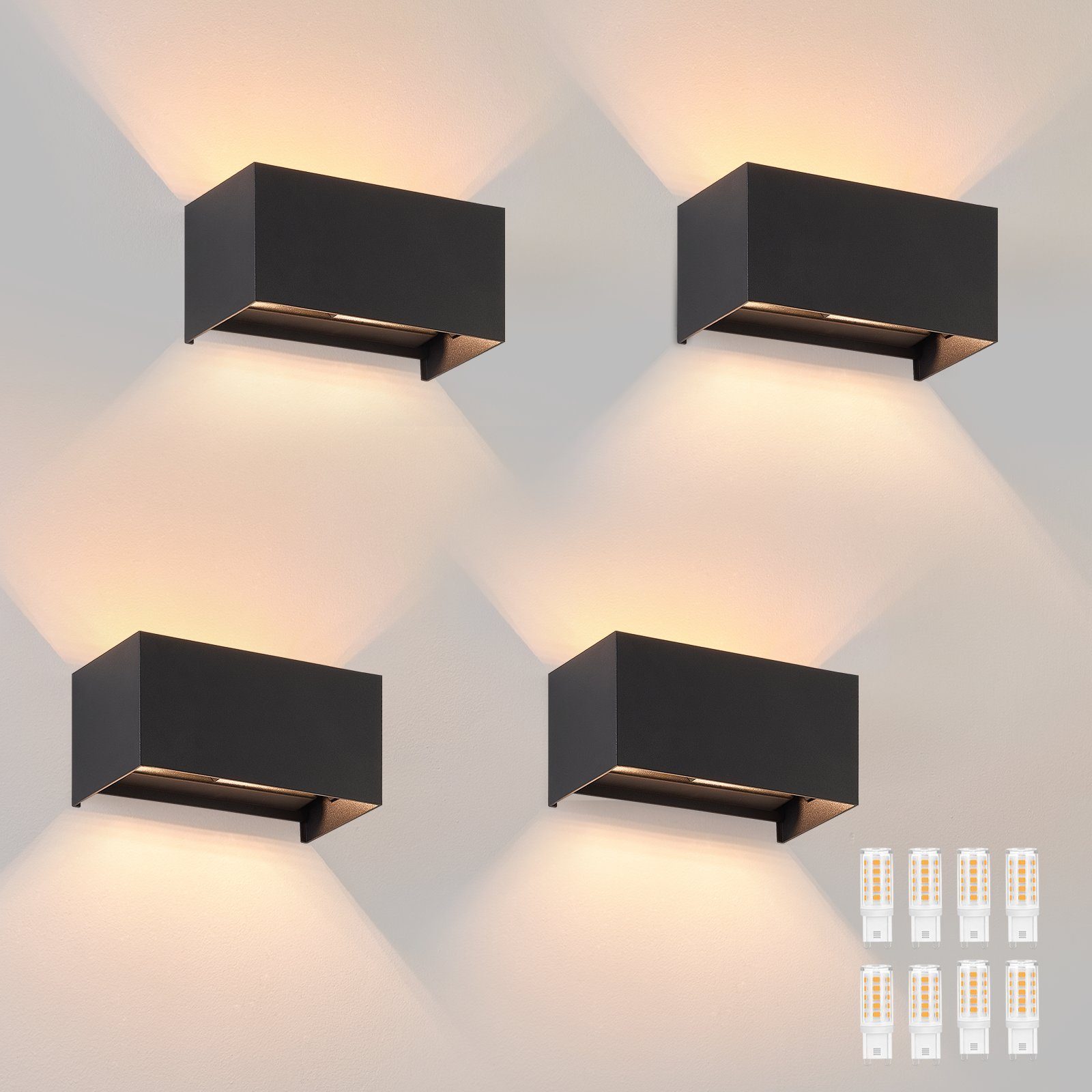 NETTLIFE 4 Črne LED zunanje stenske svetilke, gor/dol osvetlitev, IP65, topla bela svetloba G9