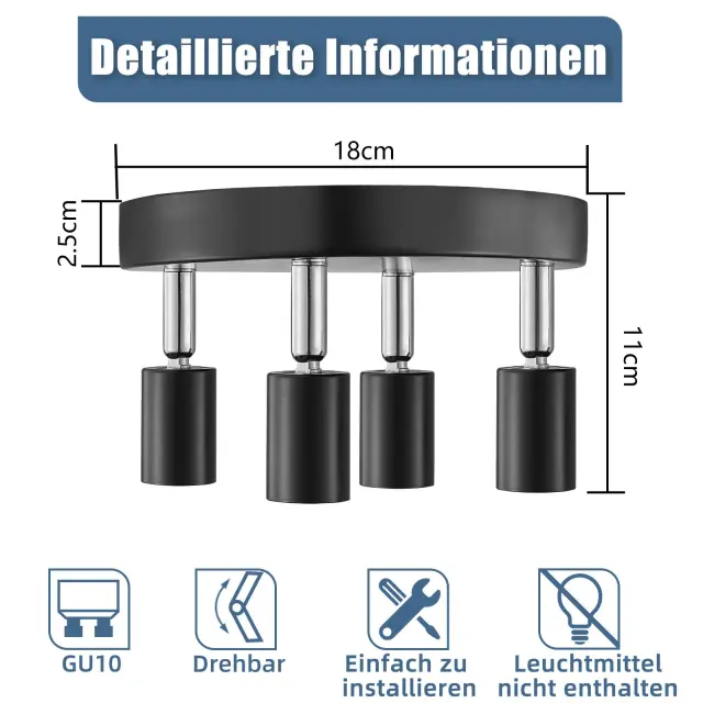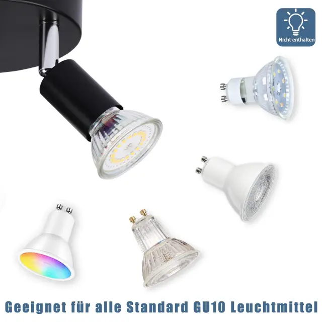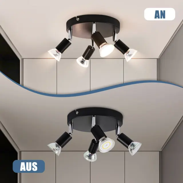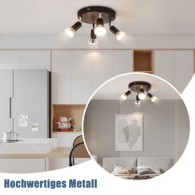 NETTLIFE 4 črne vrtljive stropne svetilke GU10 kovinske moderne svetilke za dnevno sobo, kuhinjo, hodnik in jedilnico