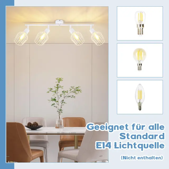 NETTLIFE 4 E14 kovinski stropni reflektorji, vrtljiva svetilka za hodnik, stenska svetilka za hodnik in dnevno sobo, bela
