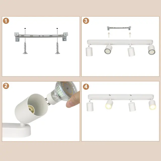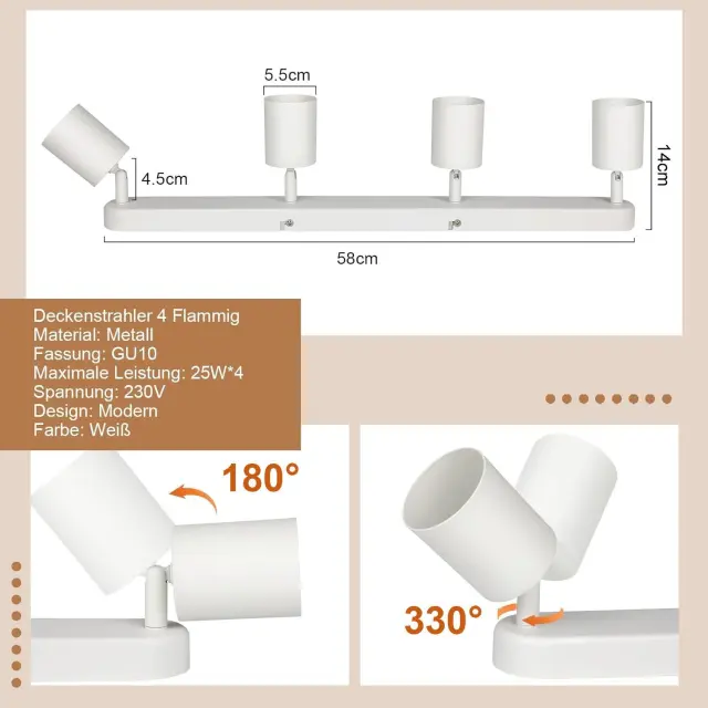 NETTLIFE 4 moderne nastavljive stropne svetilke GU10 v beli barvi za dnevno sobo, hodnik, spalnico, jedilnico, kuhinjo
