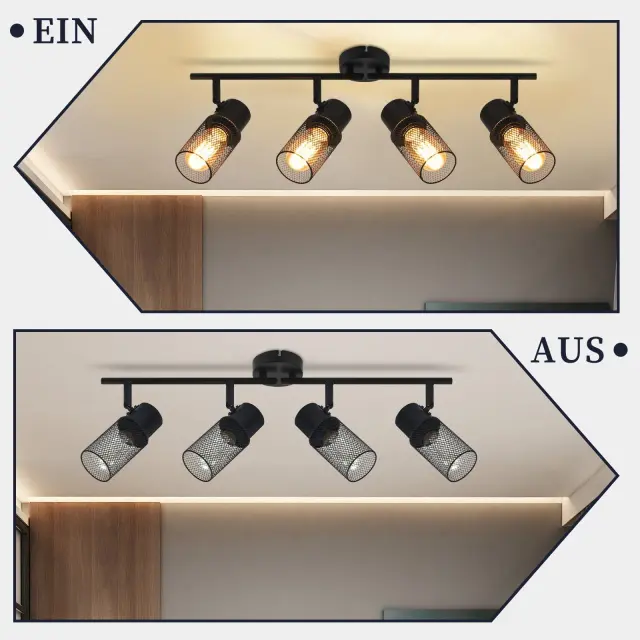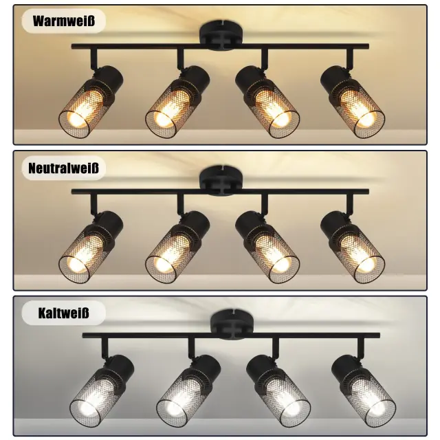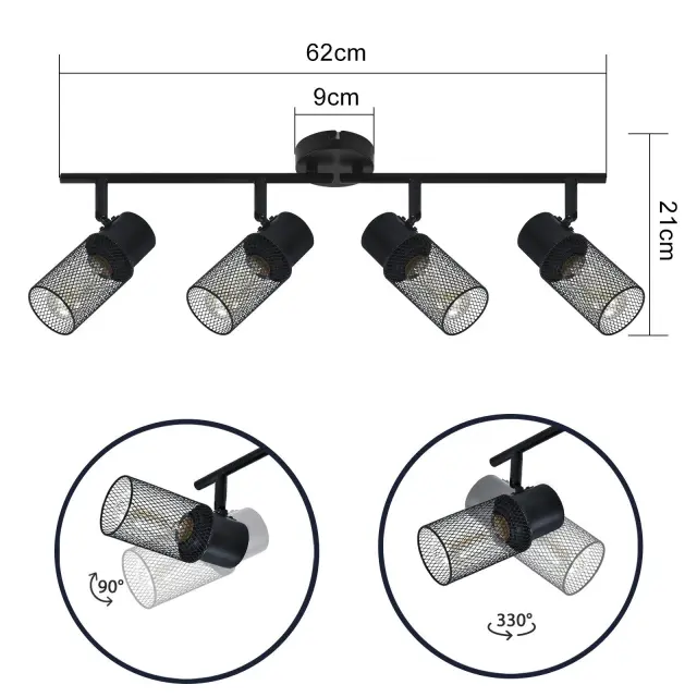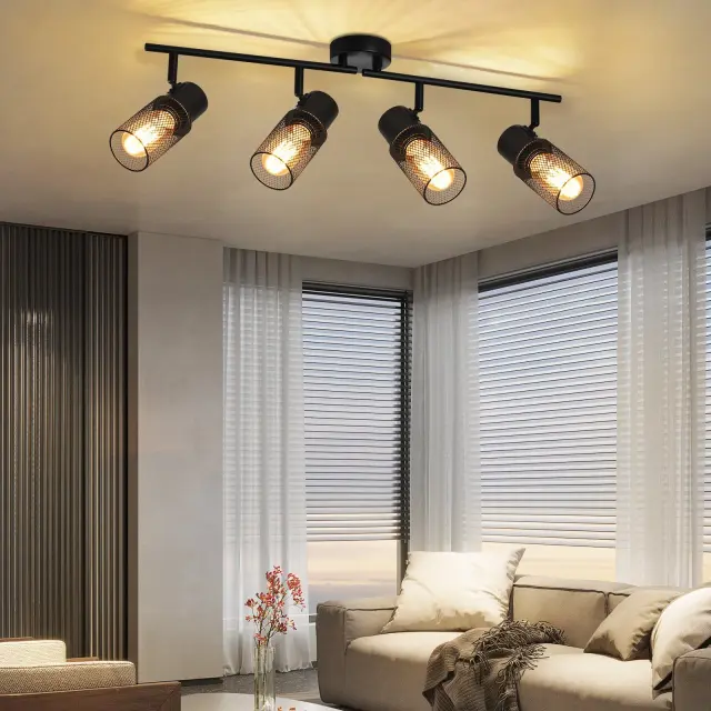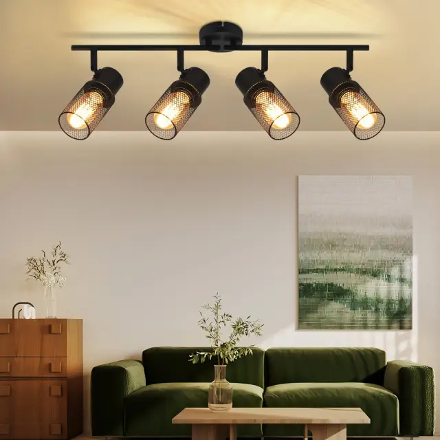 NETTLIFE 4 vintage črne kovinske E27 nastavljive stropne svetilke za dnevno sobo, spalnico, otroke, kuhinjo brez žarnice