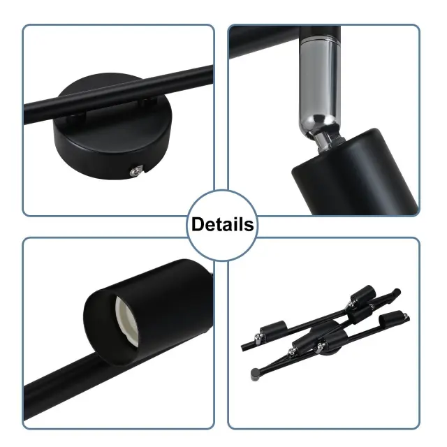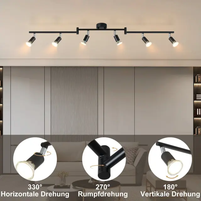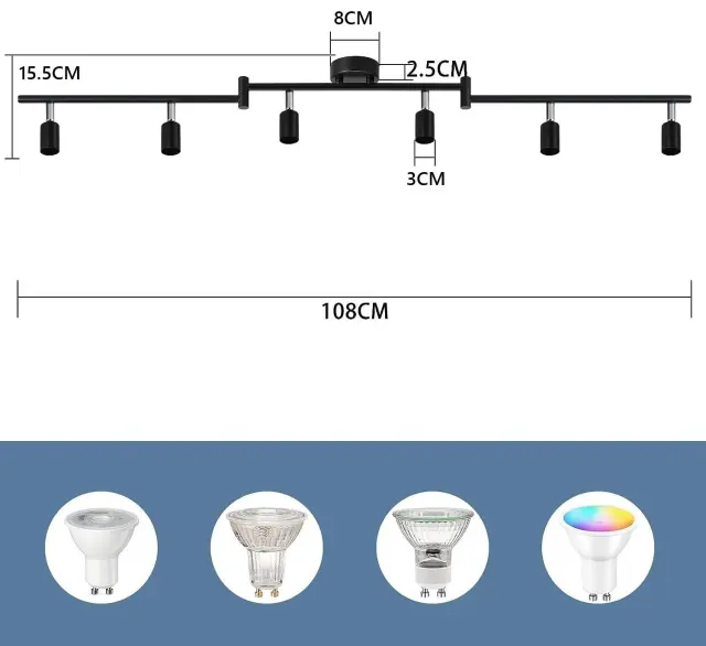 NETTLIFE 6 GU10 črnih kovinskih stropnih reflektorjev za kuhinjo, dnevno sobo, spalnico