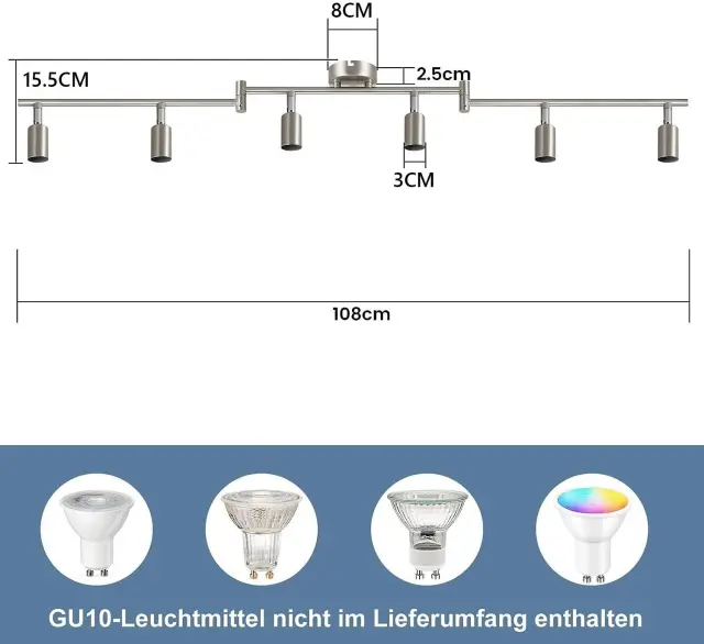 NETTLIFE 6 modernih stropnih reflektorjev GU10 iz nerjavečega jekla za dnevno sobo, spalnico in notranjo uporabo (brez žarnice)