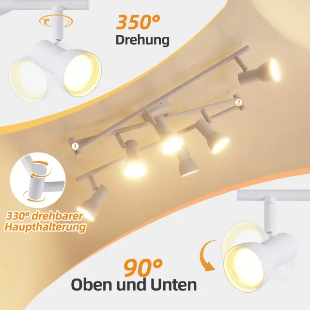 NETTLIFE 6-plamenska bela GU10 kovinska stropna svetilka za spalnico in hodnik