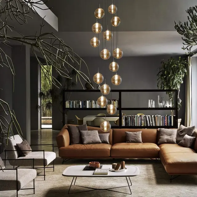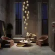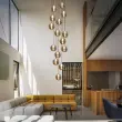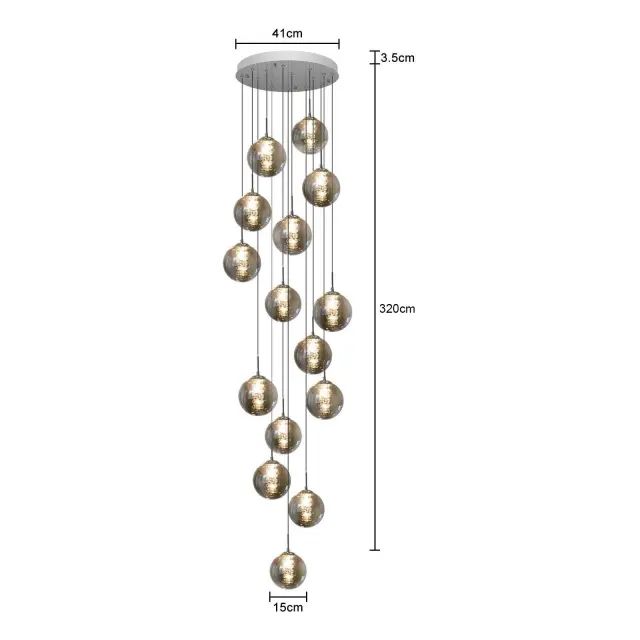 NETTLIFE Amber Glass Viseča Svetilka Moderna Diam.41cm G9 Stopnišče Nastavljiva Višina Lestenec 15 Žarnic Kuhinja Hodnik Svetilka