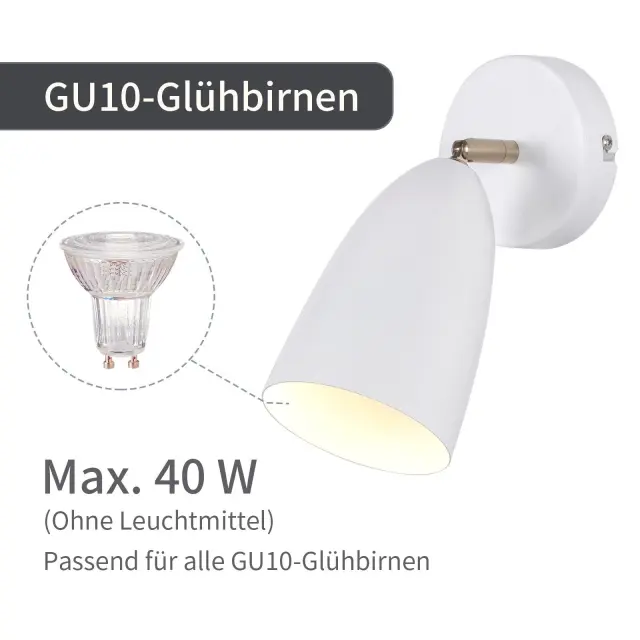 NETTLIFE Bela notranja stenska svetilka - vintage stenski reflektor za retro spalnico GU10