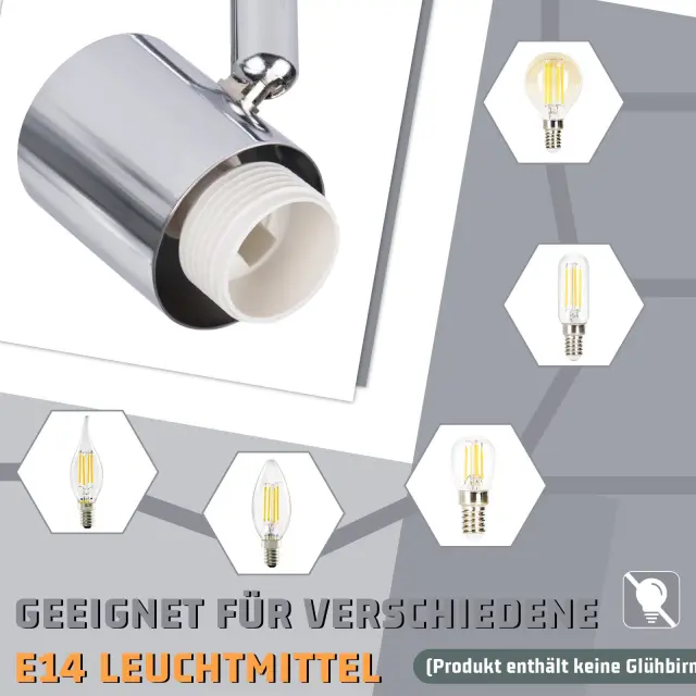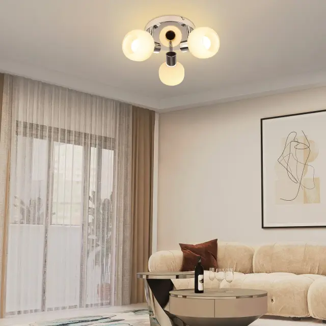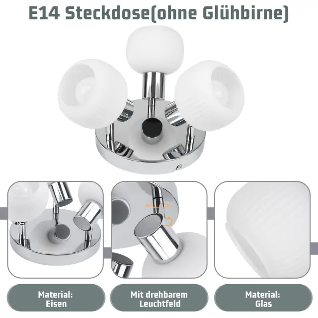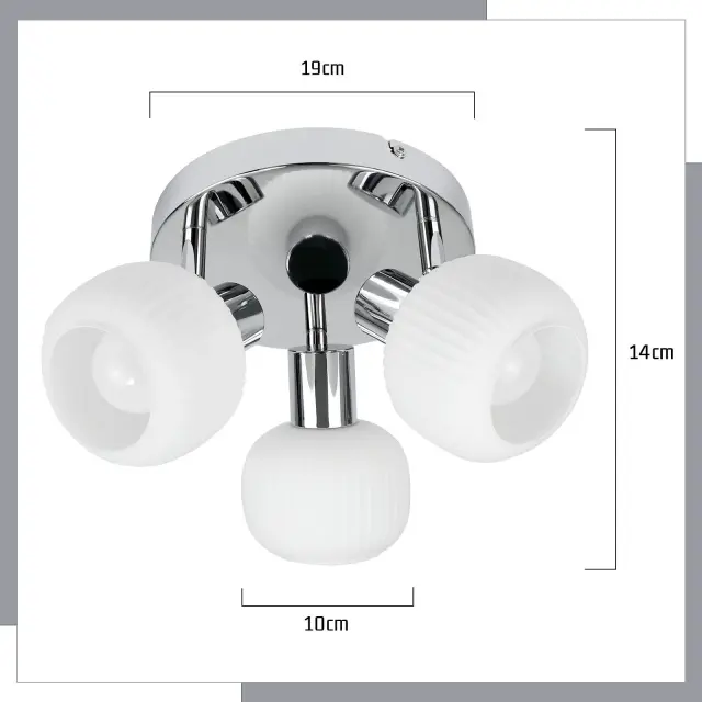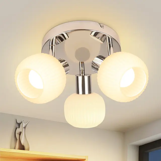 NETTLIFE Bela stropna svetilka E14 3 žarnice Notranji stekleni senčnik Nastavljiva svetilka brez središča luči