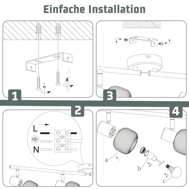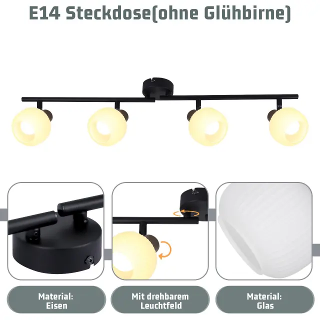 NETTLIFE Bela stropna svetilka E14, 4 žarnice, notranja steklena svetilka s senčnikom, nastavljiva