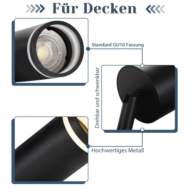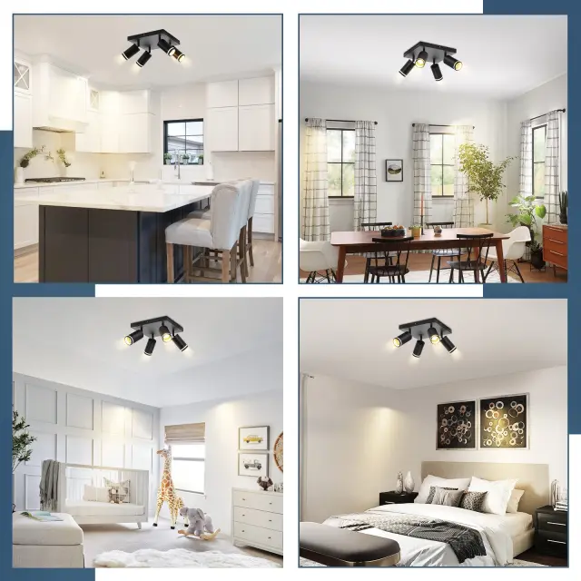 NETTLIFE Črn stropni reflektor 4 žarnice moderni GU10 reflektor nastavljivi notranji kovinski reflektorji