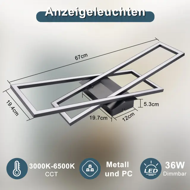 NETTLIFE Črna 36W zatemnljiva LED stropna svetilka za dnevno sobo, pisarno, otroško sobo