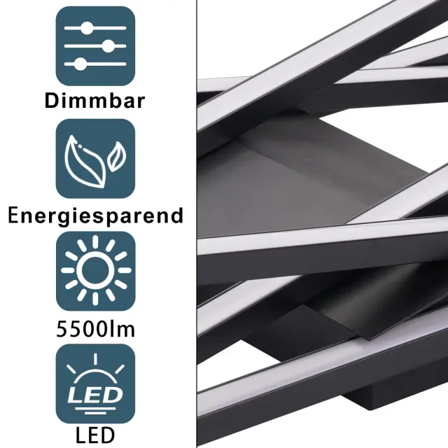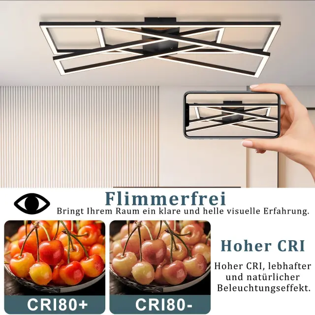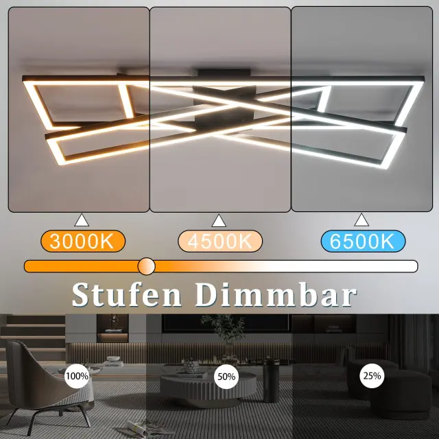 NETTLIFE Črna 45W zatemnljiva LED stropna svetilka za dnevno sobo, pisarno, otroško sobo