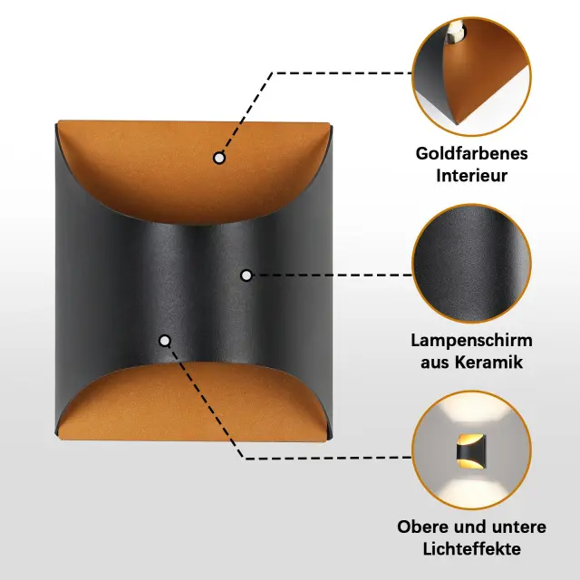 NETTLIFE črna in zlata stenska svetilka - Moderne stenske svetilke za stopnišča, otroško sobo