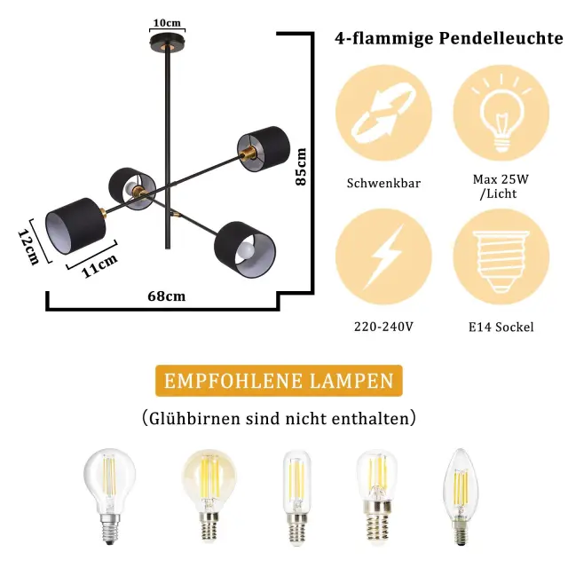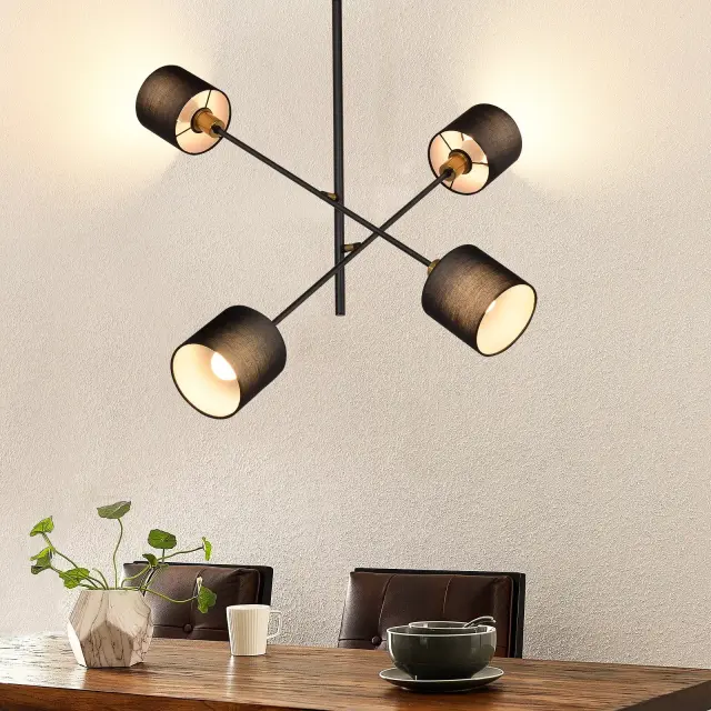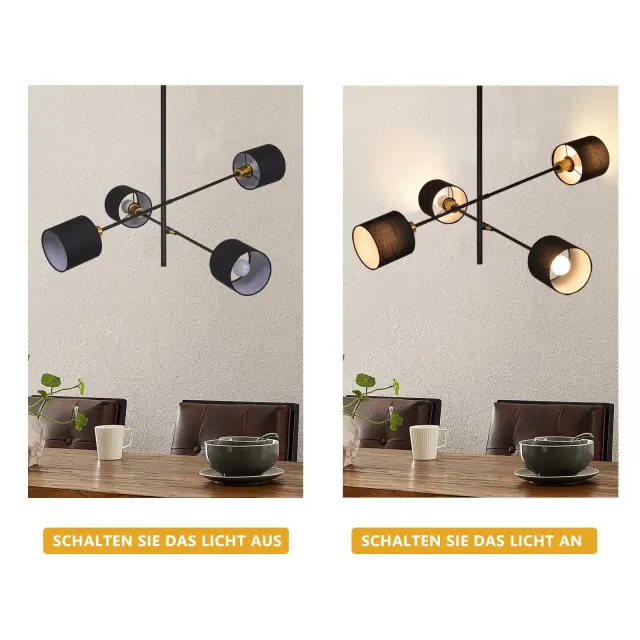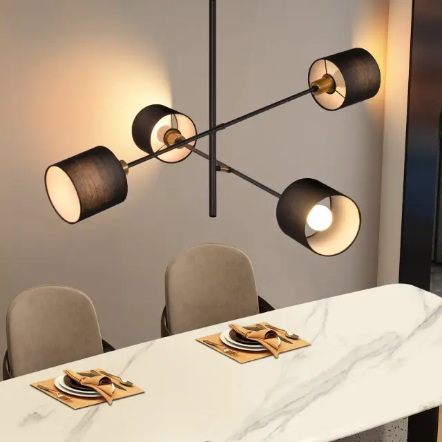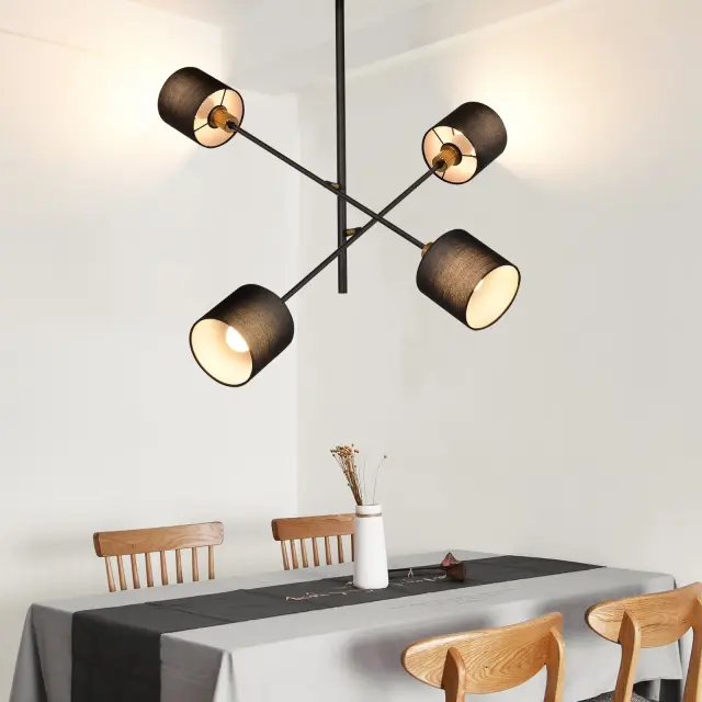NETTLIFE Črna Kovinska Viseča Svetilka E14 Max. 25W Diam. 85 cm 4 Žarnice Senčilo Dnevna Soba Jedilnica Vintage Stropna Kuhinjska Svetilka