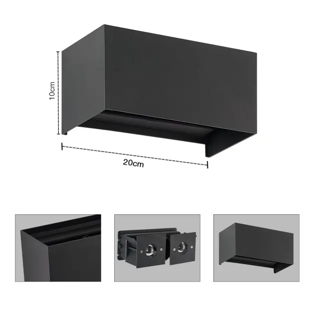 NETTLIFE Črna LED stenska svetilka IP65, nastavljiva topla bela svetloba G9, notranja/zunanja stenska svetilka za dnevno sobo