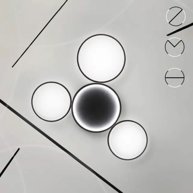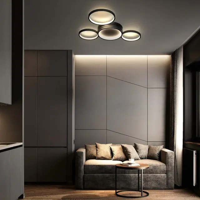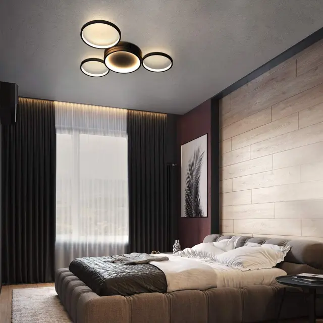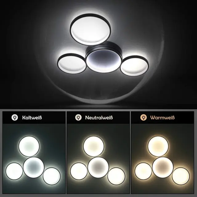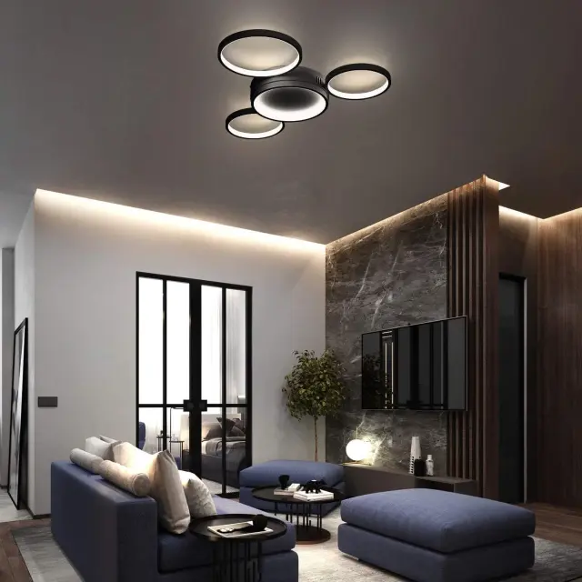 NETTLIFE Črna LED stropna svetilka, zatemnljiva z daljinskim upravljalnikom, moderna oblika, 4 obroči, 52 W, aluminijasta notranjost