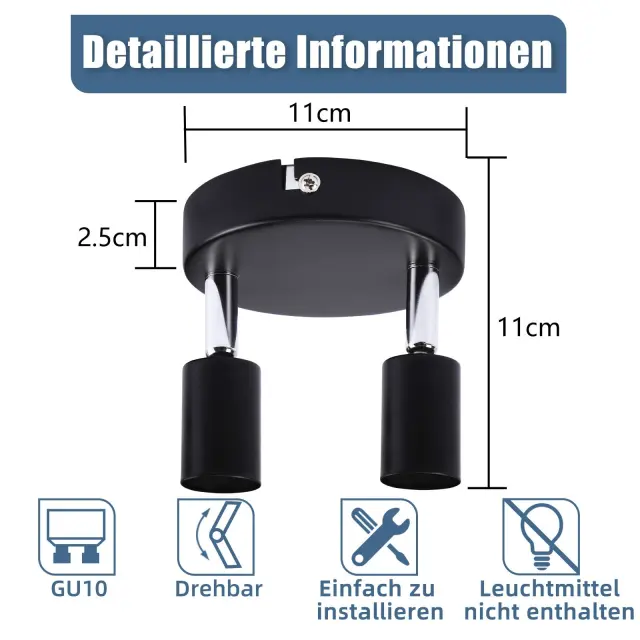 NETTLIFE Črna LED stropna svetilka z 2 žarnicama, GU10, industrijska
