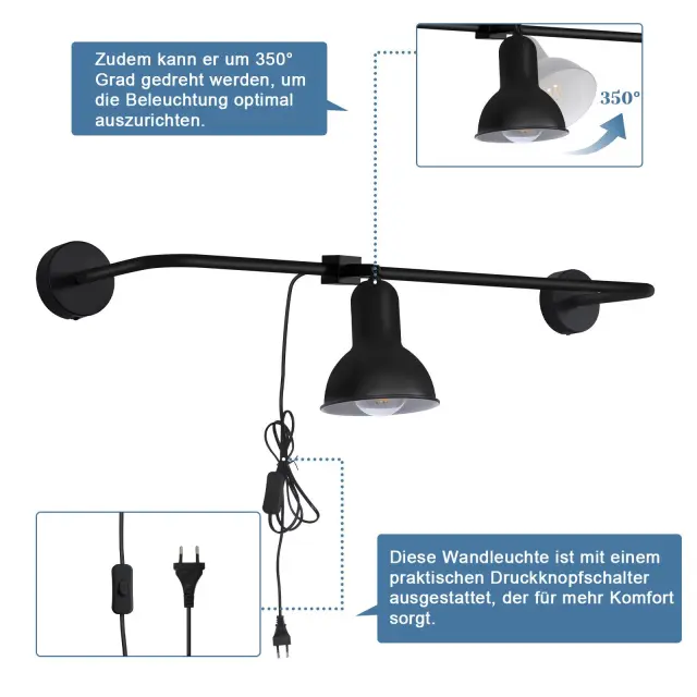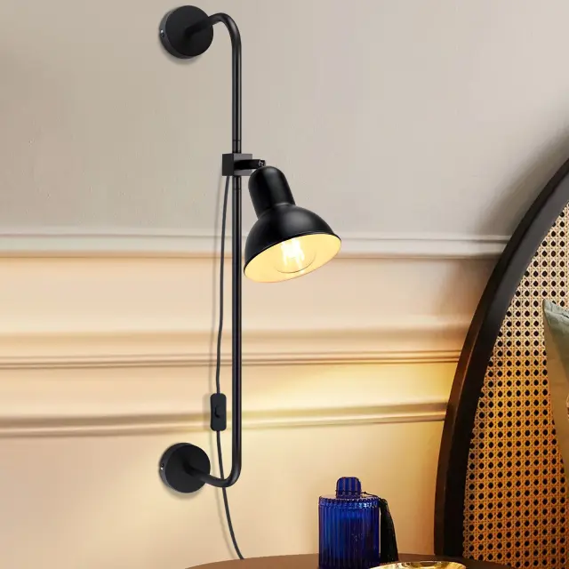 NETTLIFE črna notranja stenska svetilka E27 vintage kovinska stopniščna svetilka z vrtljivim indirektnim dizajnom