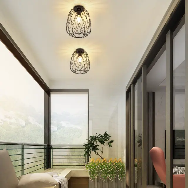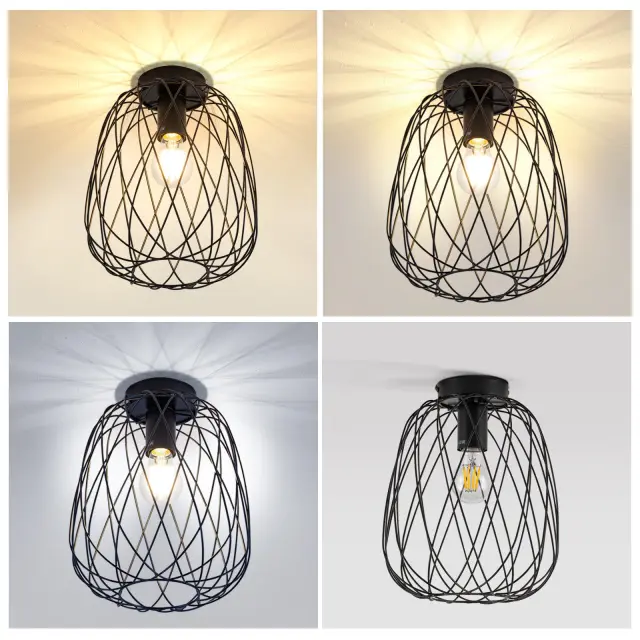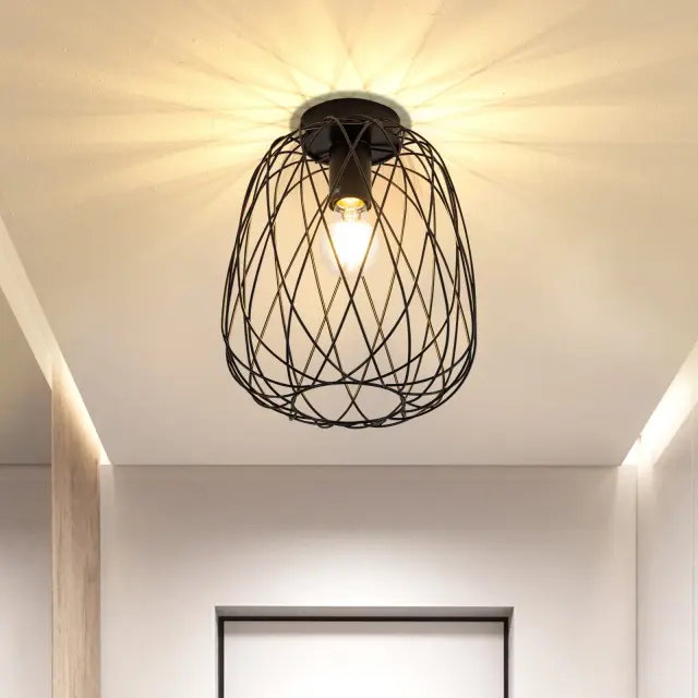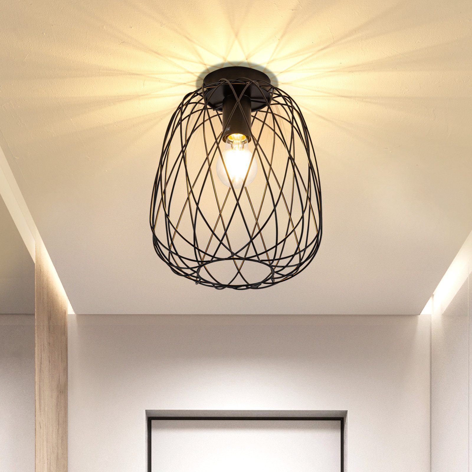 NETTLIFE Črna stropna svetilka za hodnik, vintage industrijska retro stropna svetilka E27, 1 žarnica, okrogla kovinska svetilka