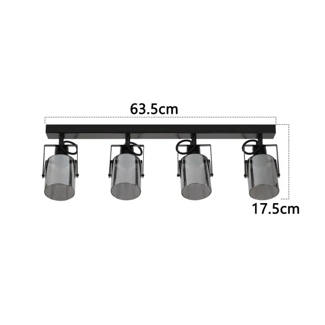 NETTLIFE Črna stropna svetilka s 4 žarnicami, vintage industrijska stropna svetilka E14