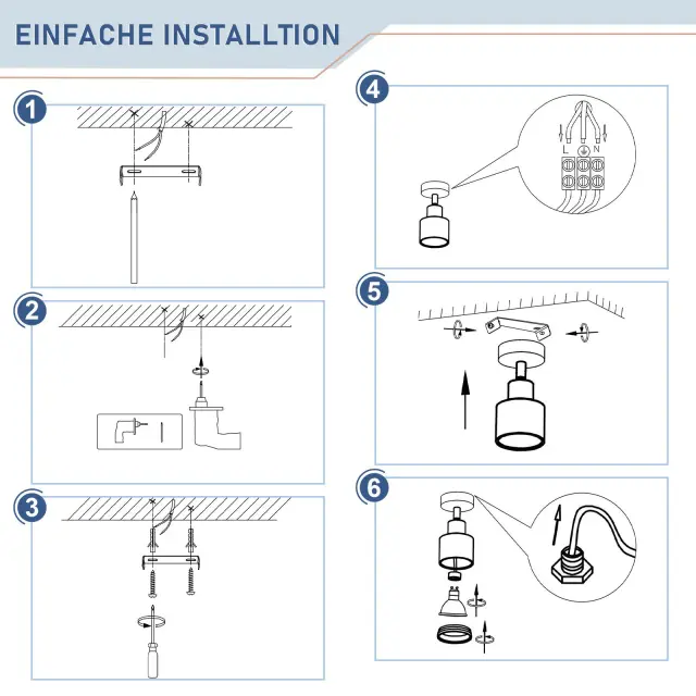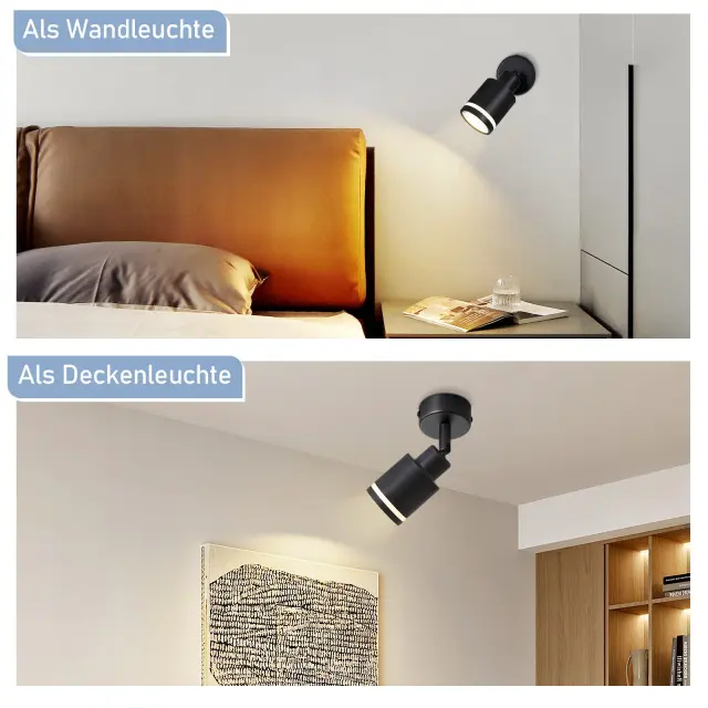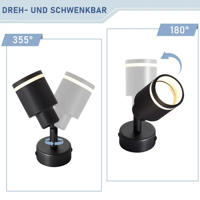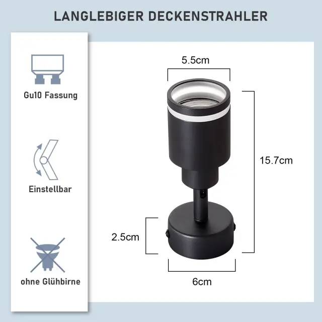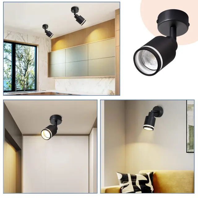 NETTLIFE Črna stropna svetilka, moderna stropna svetilka, 1 nastavljiva žarnica, kovinska, GU10