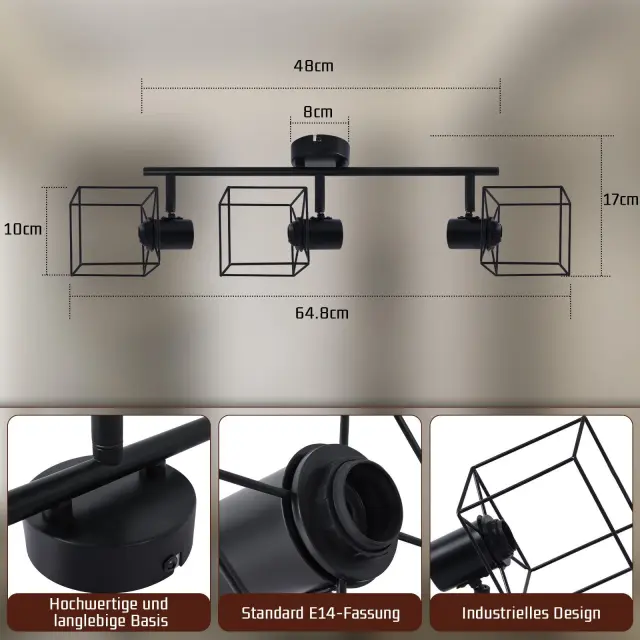 NETTLIFE Črna stropna svetilka E14 Vintage kovinska stropna svetilka za dnevno sobo, nastavljiva brez žarnice