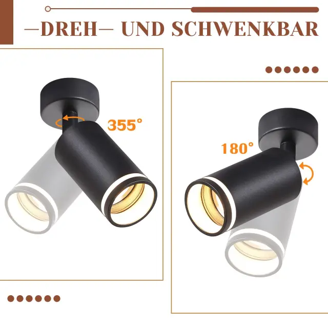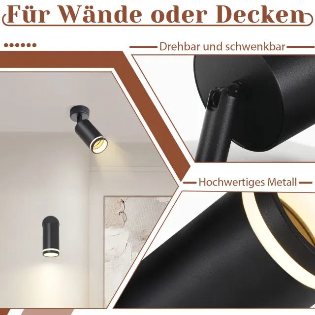 NETTLIFE Črna stropna svetilka z 1 žarnico, moderna stropna svetilka GU10, nastavljiva notranja kovinska svetilka
