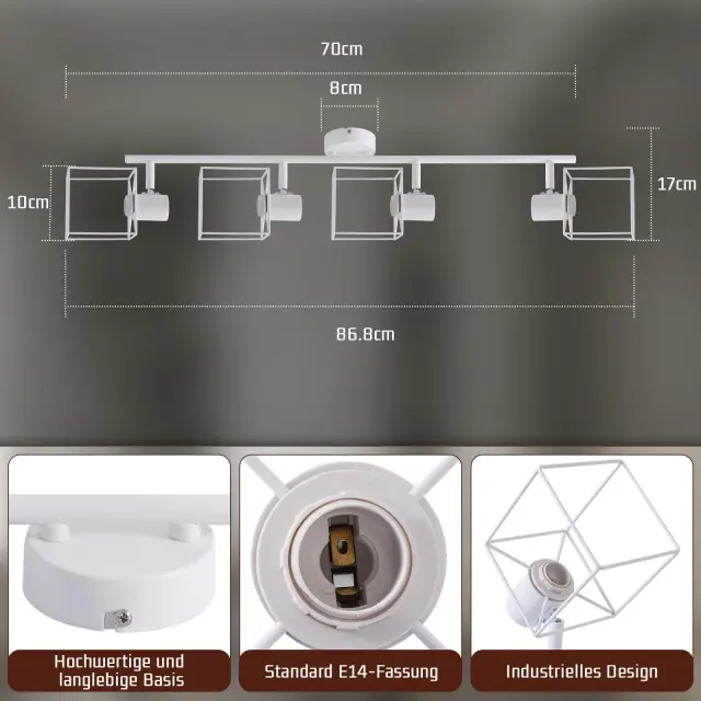 NETTLIFE Črna stropna svetilka E14 Vintage kovinska stropna svetilka za dnevno sobo, nastavljiva brez žarnice