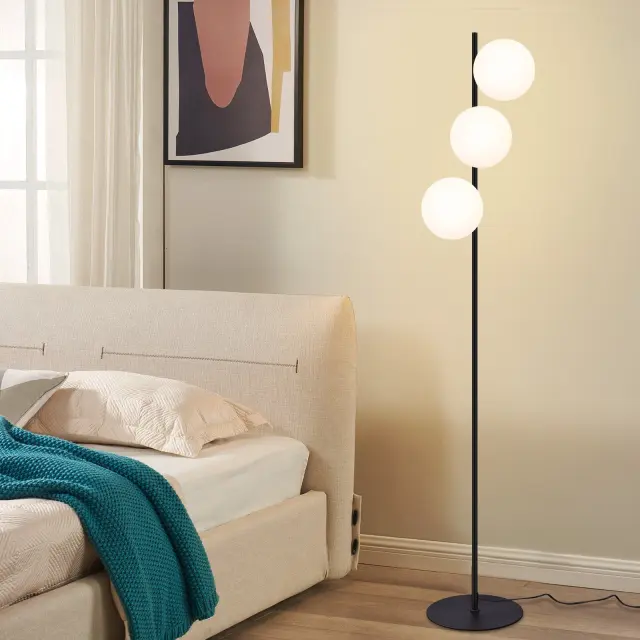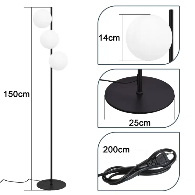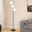 NETTLIFE črna talna svetilka - moderna talna svetilka za dnevno sobo s 3 plameni in nožnim stikalom, kovinska oblika, steklena, E27