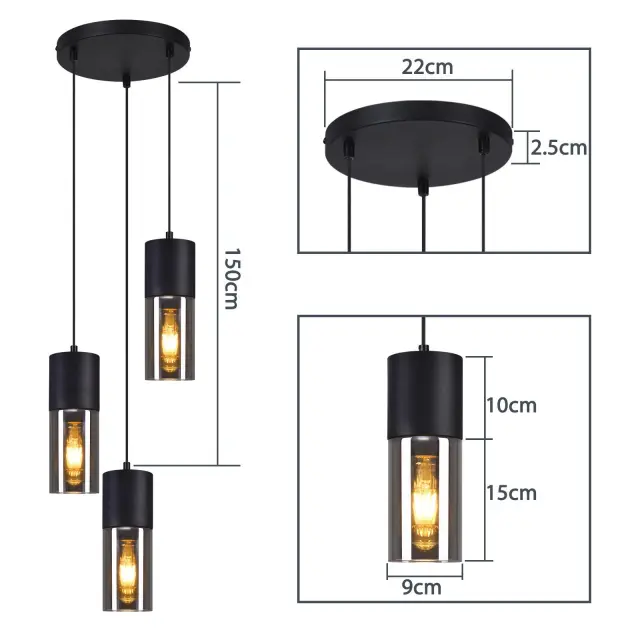 [Sodoben industrijski dizajn] Ta industrijska steklena viseča svetilka ima črno glavo E27 in spiralni železni senčnik. Njena preprosta in prostorna zasnova lahko ustvari toplo in lepo notranje okolje v vaši sobi. [Naredi sam] Visečo svetilko za jedilno mizo je mogoče enostavno nastaviti (od 10 cm do 110 cm), da ustreza različnim potrebam prostora in zagotavlja dobro svetlobno izkušnjo. Material: železo in steklo, vložek E27. S klasičnim črnim premazom. [Zamenljiv vir svetlobe] Ta črna viseča svetilka ima vložek E27, ki je združljiv z različnimi vrstami svetlobnih virov E27 do 40 vatov. Izbirate lahko med LED žarnicami/Edison žarnicami/halogenskimi žarnicami/Wi-Fi žarnicami glede na vaše potrebe. [Enostavna namestitev] Ta viseča svetilka za dnevno sobo je opremljena s celotno opremo, navodili in vsemi deli za namestitev. Če imate kakršna koli vprašanja, nas prosim kontaktirajte. Storitev vam bomo zagotovili v 24 urah. [Primerno za številne prizore] Viseča svetilka z geometrijskim dizajnom kletke je primerna za kuhinjo, jedilnico, hodnik, kavarno, klub, bar, trgovino itd. Senčnik lestencev ustvarja čudovit svetlobni in upodabljajoč učinek na stropu. Popolno darilo za vaše prijatelje!