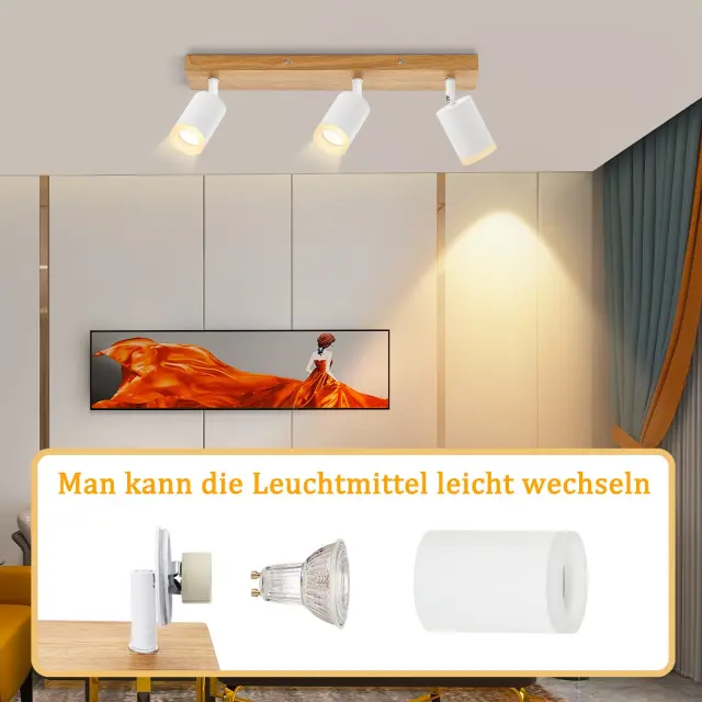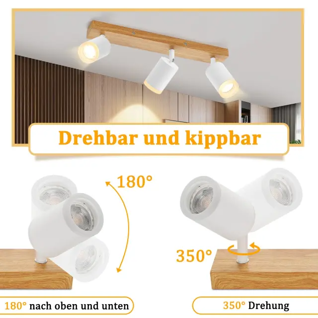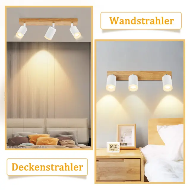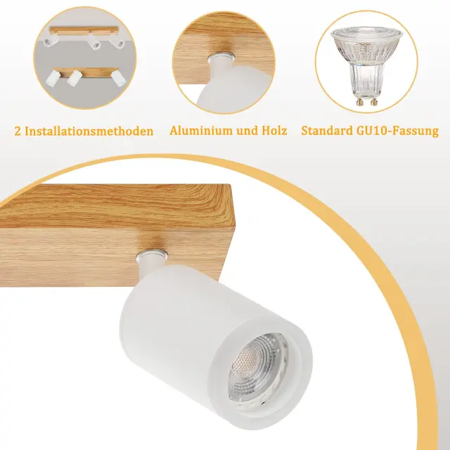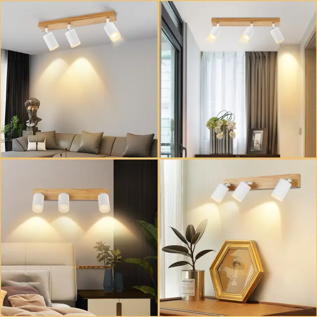 NETTLIFE Črno/bela stropna svetilka GU10 Vintage lesena vrtljiva stropna svetilka brez žarnice