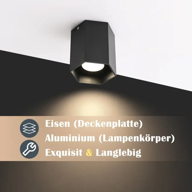 NETTLIFE GU10 Spots Črna Stropna Svetila Šesterokotni Dizajn Spotlights Max. 40W Za Dnevno Sobo, Hodnik - Brez Žarnice