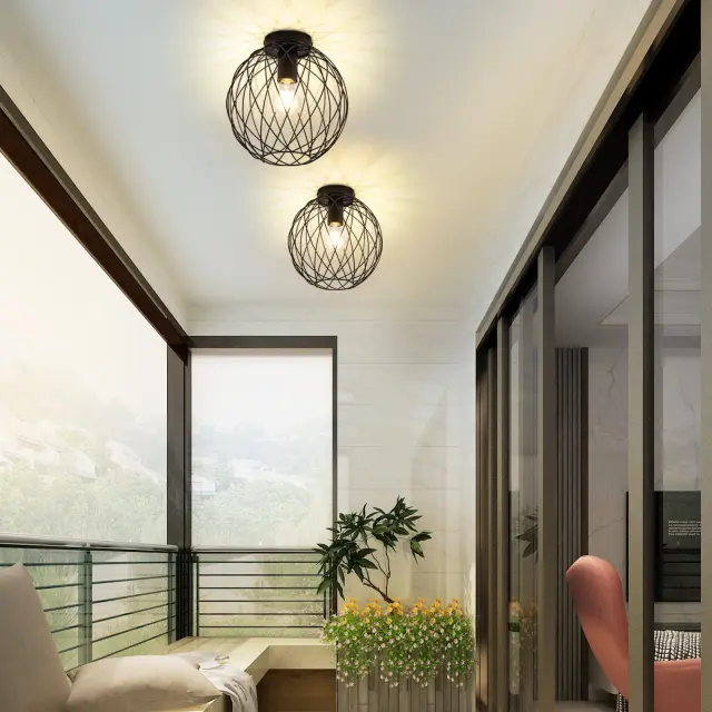 NETTLIFE Industrijska stropna svetilka Črna Vintage Okrogla Svetilka za Hodnik E27 1 Žarnica Retro Kovinska