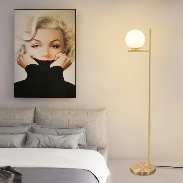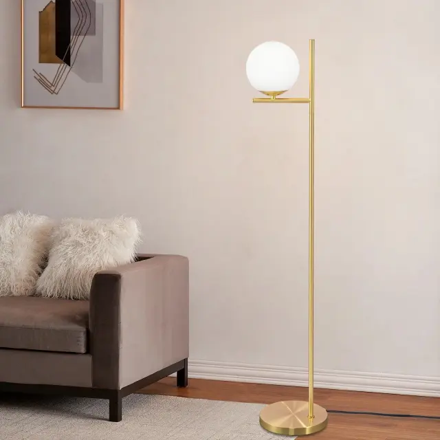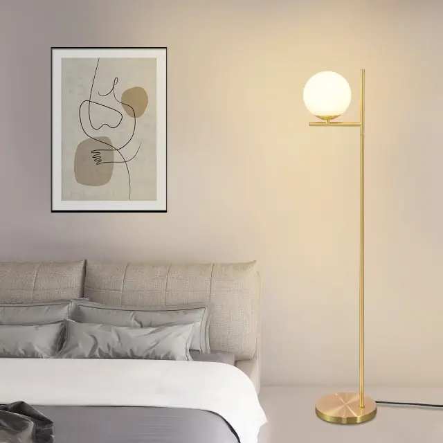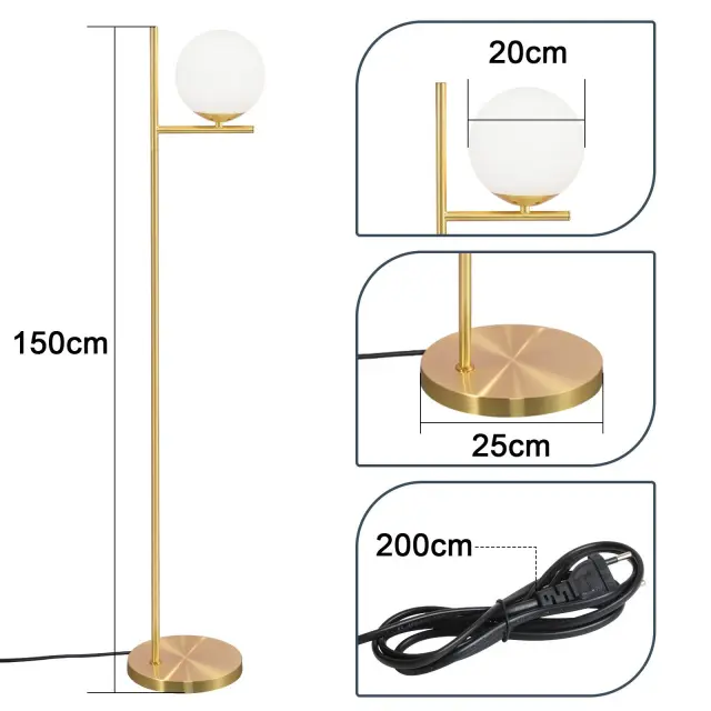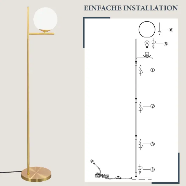 NETTLIFE Industrijska zlata talna svetilka z nožnim stikalom, bela stekleno-kovinska oblika, E27, 2-metrski kabel