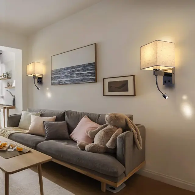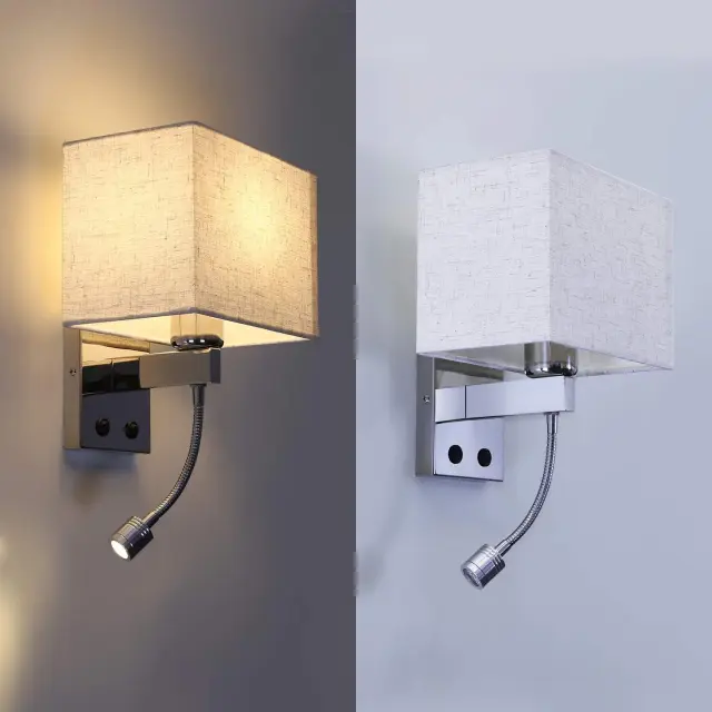 NETTLIFE komplet 1 stenske LED svetilke za notranjo uporabo, spalnica, posteljna svetilka iz blaga z gibljivo roko za branje E27