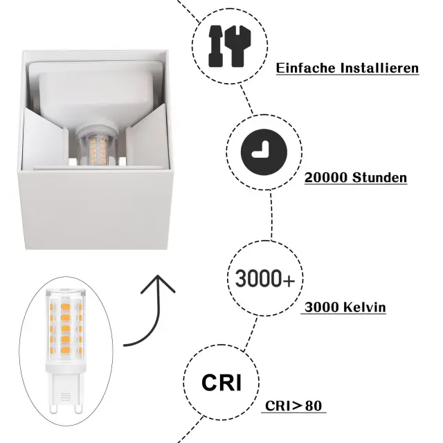 NETTLIFE Komplet 2 LED stenskih svetilk za zunanjo uporabo, toplo bele barve IP65, za dom, spalnico, stopnišče