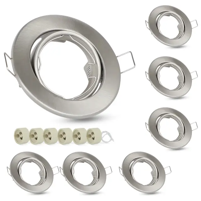 Tehnični podatki: Prejeli boste 6 srebrnih montažnih okvirjev s 6 keramičnimi okovi GU10 in fiksnimi vzmetmi. (Žarnica ni priložena). Priporočamo premer vgradne luknje približno 68–80 mm in globino vgradnje približno 75–90 mm. Ta vgradni reflektor je združljiv s katero koli svetilko s premerom 50 mm, ne glede na to, ali gre za LED ali halogensko svetilko. Varstvo okolja in prihranek stroškov: S temi vgradnimi reflektorji vam ni treba uporabiti celotnega reflektorja. To žarnico GU10 je mogoče enostavno zamenjati, kar prihrani čas in denar. Okvir ščiti svetilko pred prahom, vlago in drugimi nečistočami, kar podaljša življenjsko dobo svetilke in s tem prispeva k varstvu okolja. Nastavljiv snop svetlobe: Te vgradne reflektorje je mogoče zasukati za 30°, kar omogoča prilagajanje kota svetlobe po potrebi. To omogoča individualno nastavitev osvetlitve in ustvarja svetlo in vabljivo vzdušje v prostoru. Preprosta in moderna zasnova stropnega reflektorja se dobro ujema z notranjim slogom in prostor naredi lepši in prostornejši. Varen in zanesljiv: Naš vgradni okvir svetilke je izdelan iz debele kovine in je obdelan proti rjavenju. Okvir je odporen proti koroziji, stabilen in trden. Vgradni reflektor ščiti svetilko pred stikom in preprečuje električni udar. Uporaba montažnih okvirjev izboljša tudi odvajanje toplote in podaljša življenjsko dobo svetilke. Zato je naš vgradni okvir za svetilko vaša varna in zanesljiva izbira. Te 230V LED-downlights so primerne za dnevne sobe, spalnice, kuhinje, kopalnice, hodnike, hotele, pisarne, knjižnice, KTV-je, kleti, veleblagovnice in številne druge prostore, ki potrebujejo svetle stropne luči. Naš vgradni okvir za reflektor ima 2-letno garancijo. Če imate kakršna koli vprašanja, nas prosim kontaktirajte.